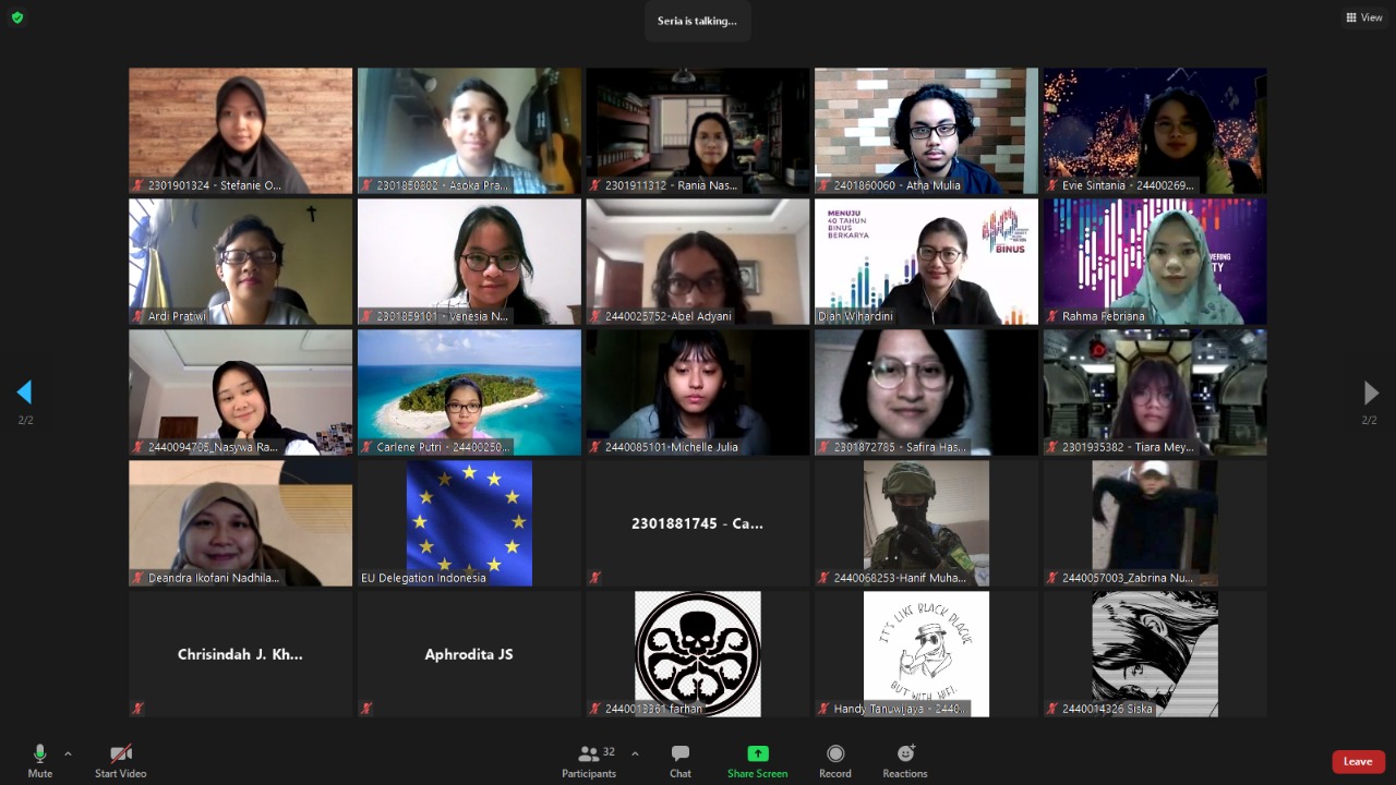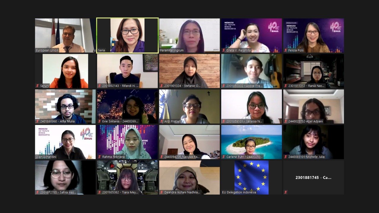 Virtual Study Visit of BINUS Students to The Delegation of The European Union to Indonesia and Brunei Darussalam
